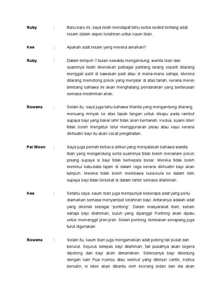 . Sejauh mana kebenaran pantang larang ketika hamil dari sudut perubatan. Fathanah bt che ismail nadia nasuha bt mohd saidi noor. Kaum iban atau kaum dayak iban dalam bahasa iban iban bermaksud orang manusia adalah salah satu rumpun dayak yang terdapat di sarawak kalimantan barat brunei dan tawau sabah.